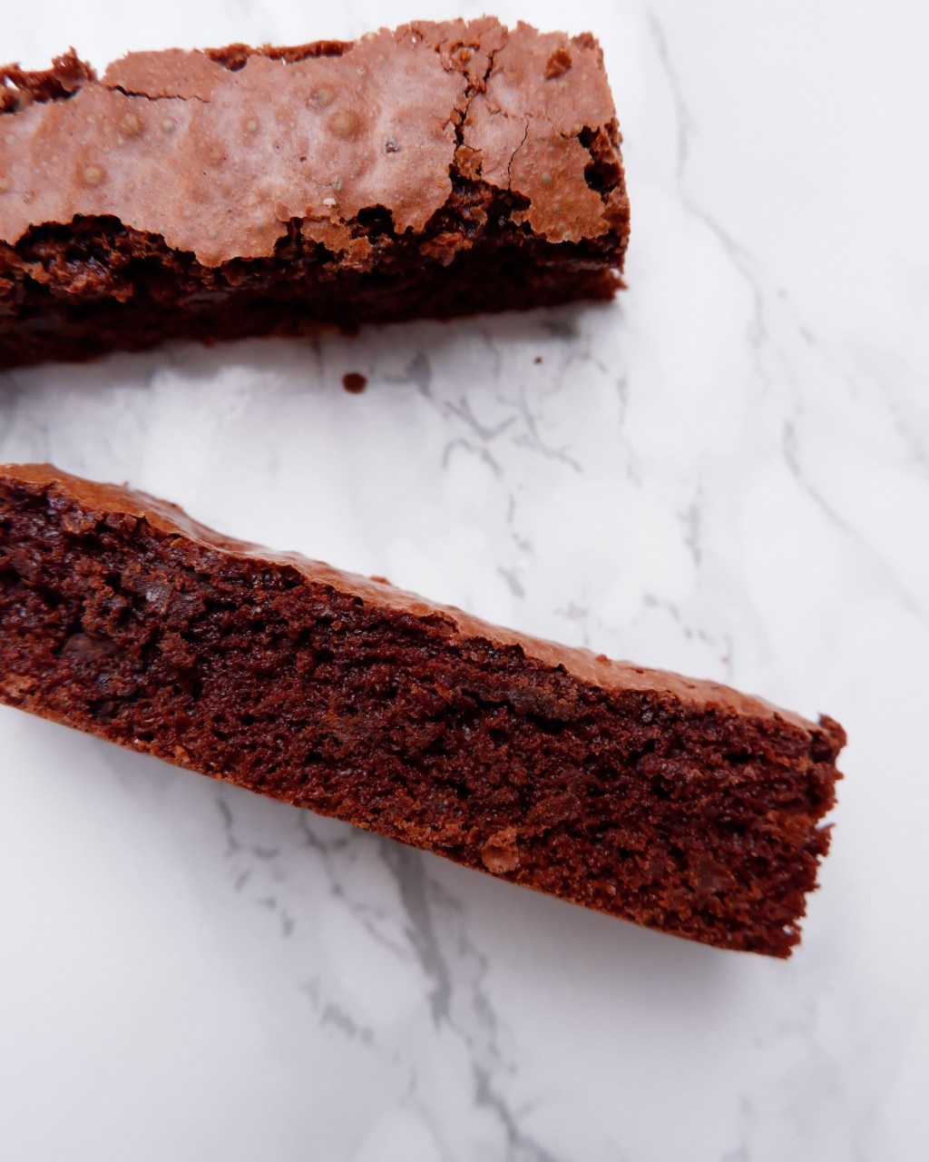 Tænd ovnen på 175 grader varmluft. Smelt smør og mørk chokolade i mikroovnen eller over vandbad. Pisk sukker og æg sammen et minuts tid. Pisk chokoladeblandingen i. Sigt kakaopulver og hvedemel og pisk i dejen. Tilsæt havsalt og halvdelen af mælkechokoladen og vend i dejen. Fordel dejen i en 23 x 23 firkantet kagering beklædt med bagepapir i bunden. Drys resterende mælkechokolade på toppen. Bag i 30 minutter. Afkøles helt – gerne i køleskabet til dagen efter.